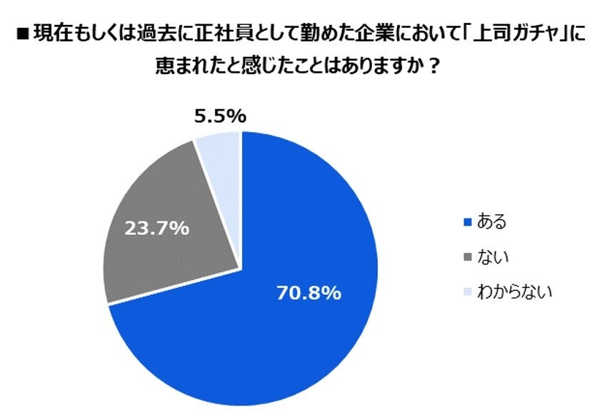 ①「上司ガチャ」にはずれた経験のある人は約8割。