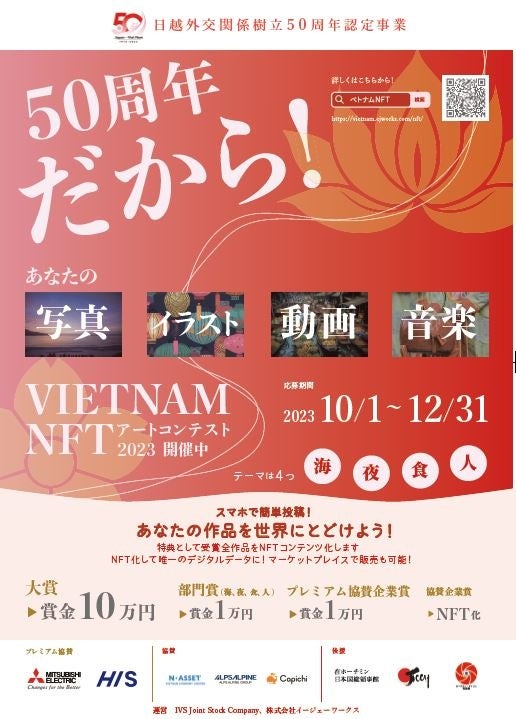 株式会社イージェーワークスは、2023年12月31日まで日越外交関係樹立50周年認定事業の「VIETNAM NFT アートコンテスト2023」をNFTを用いて開催しています。