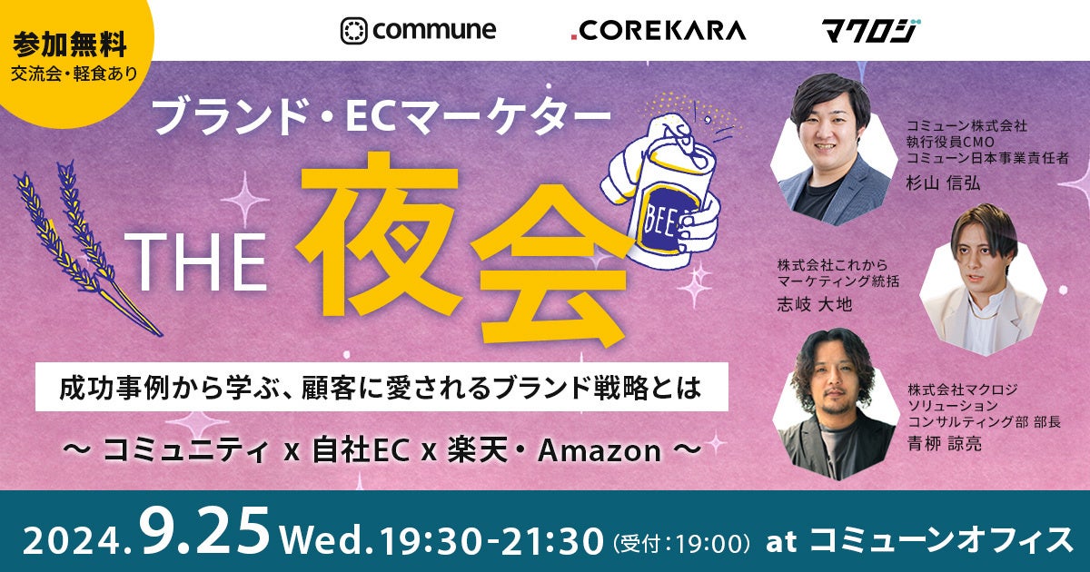 【9/25(水) 開催|無料 軽食あり】ブランド・ECマーケターの『THE 夜会』成功事例から学ぶ、顧客に愛されるブランド戦略とは〜コミュニティ×自社EC×楽天・Amazon〜
