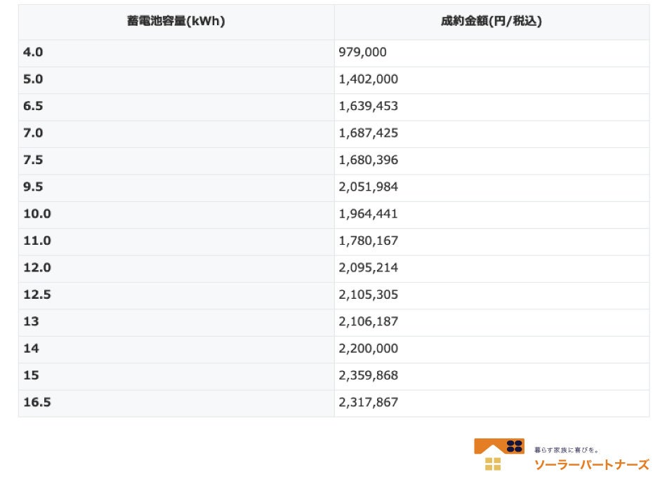 住宅用蓄電池の主な容量帯の相場価格は以下の通りです。
