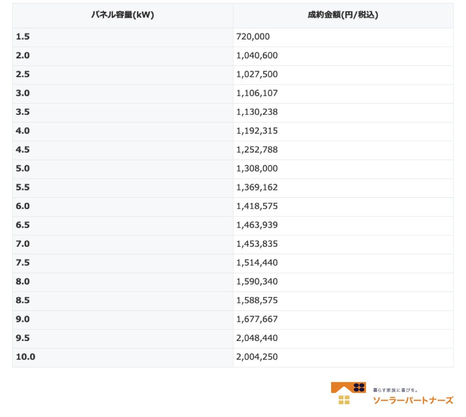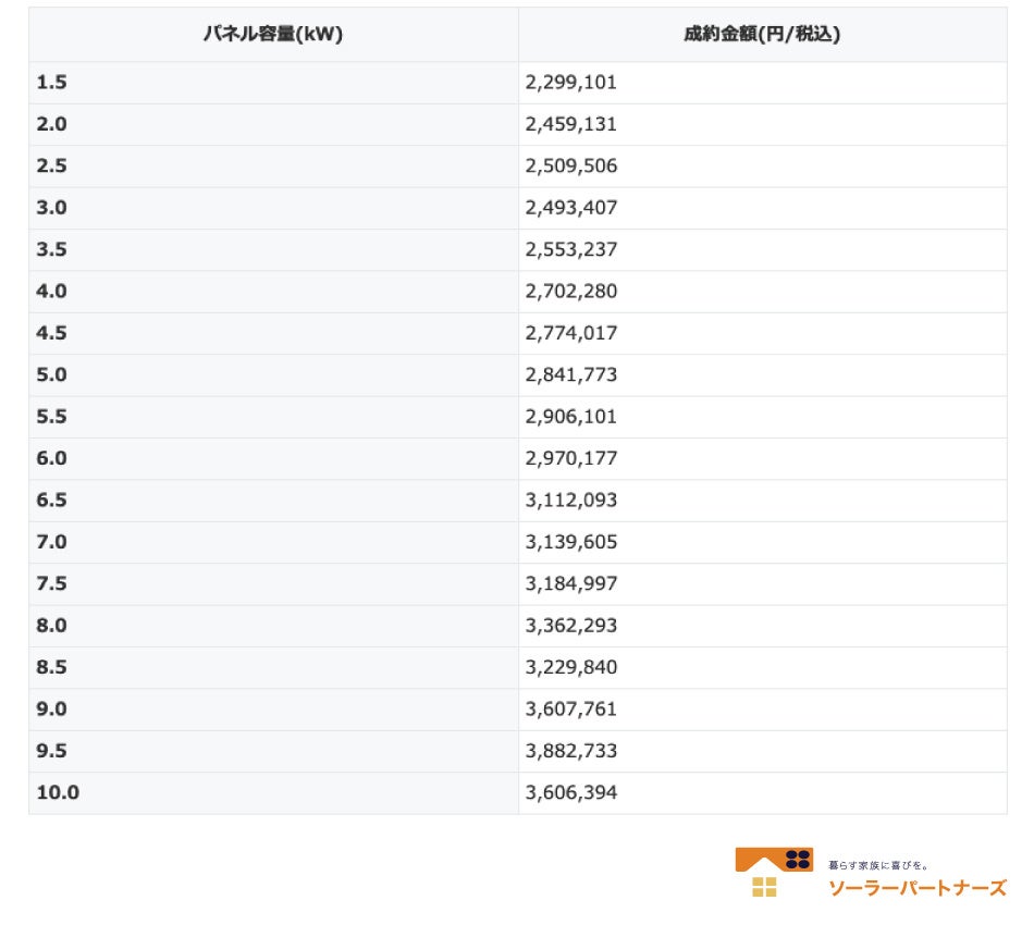 住宅用太陽光発電システムの主な容量帯の相場価格は以下の通りです。