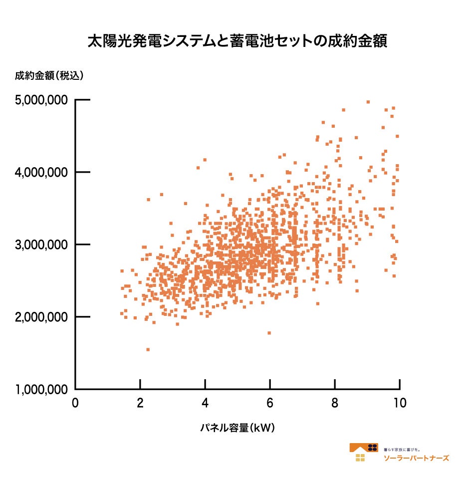 太陽光発電システムと蓄電池セット 成約金額(パネル容量別)