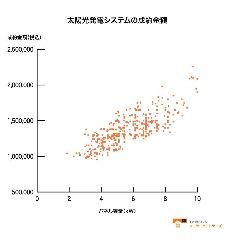 契約金額を個別に見ると相場価格を中心に約50万円程度の上下幅を持って取引が行われていることが分かります。この価格のばらつきはメーカーや製品による違いのほか、設置地域の気候条件など現場の特性を反映した費用(例:積雪対策)が影響しているものと考えられます。