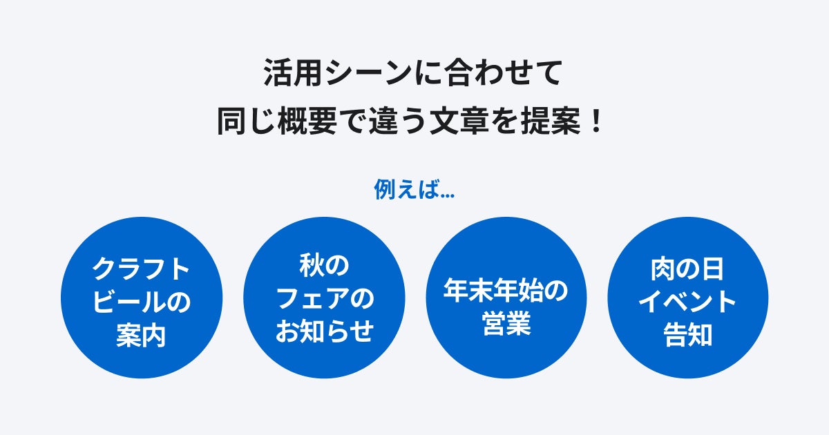 また「配信内容を考えてくれる機能が欲しい」「店舗の雰囲気や季節性に合わせた配信文章を作りたい」というご要望もいただいておりました。