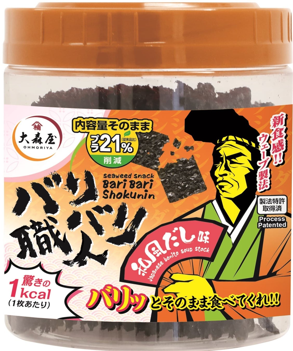海苔の老舗メーカー「大森屋」が手掛ける、そのまま食べる海苔のおつまみ・おやつシリーズ。発売当初から累計売上60億円を突破した大人気商品です。製法特許取得済の「新食感ウェーブ製法」を採用、バリバリとした食感が楽しめます。しかも1枚たったの1kcal。
