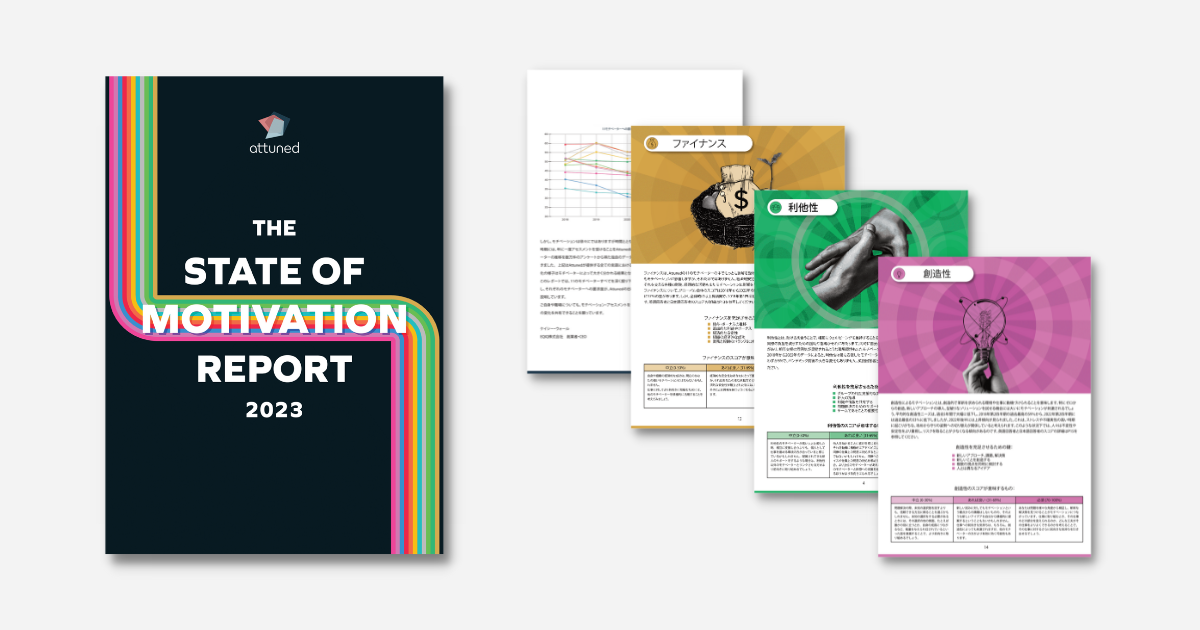 Attunedは過去4年の「内発的動機づけアセスメント」受検データを匿名化した上で分析し、新型コロナウイルス流行前の2019年から2023年にかけてのモチベーションの要因への要求度の変化や、地域、性別、言語による特徴を分析しました。