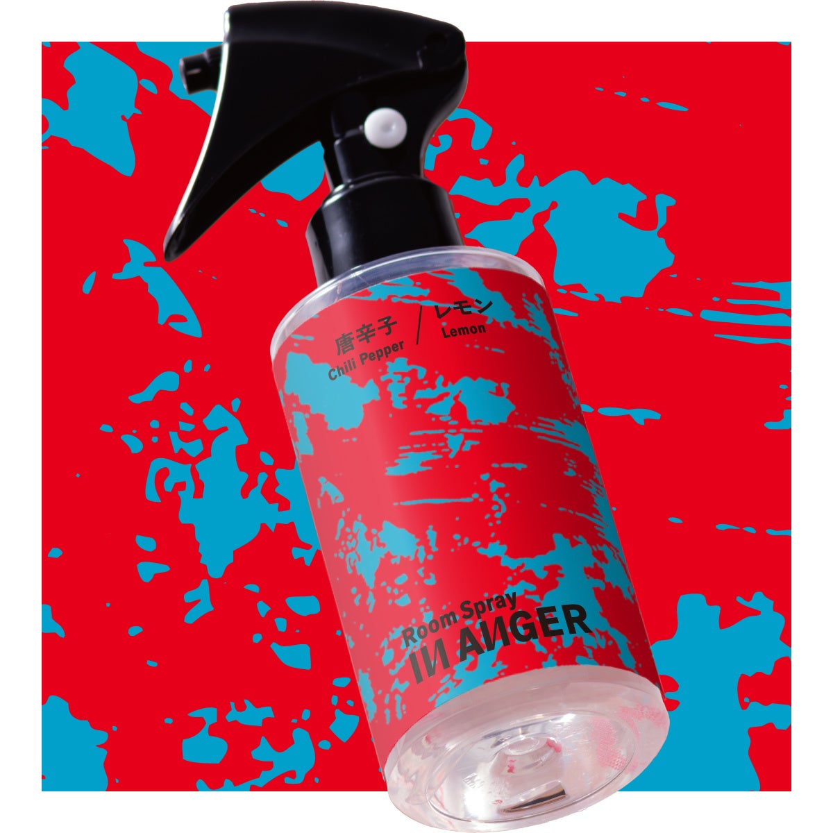 ルームスプレー<IN ANGER(インアンガー)>は、白熱したミーティング後の空気のこもった会議室への"怒り"から生まれました。悪者がいるわけではない。窓をひらき風が入れば解決する。しかし、すでに揺さぶられてしまった私の感情はどこへ行けばいいのでしょうか。そんな時は、もやつく空間を打ち抜くようにIN ANGERを強く握りしめる。スパイシーかつフレッシュな香りが通り過ぎていく。私は落ち着きを取り戻す。"怒り"を"香り"に変えながら。