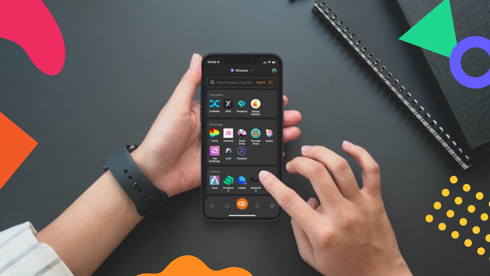 暗号資産の初心者にも簡単に使えるよう設計されたマルチチェーン対応のモバイルウォレット、DAppsブラウザをベースに次世代Web3SNSの実装をおこなっています。