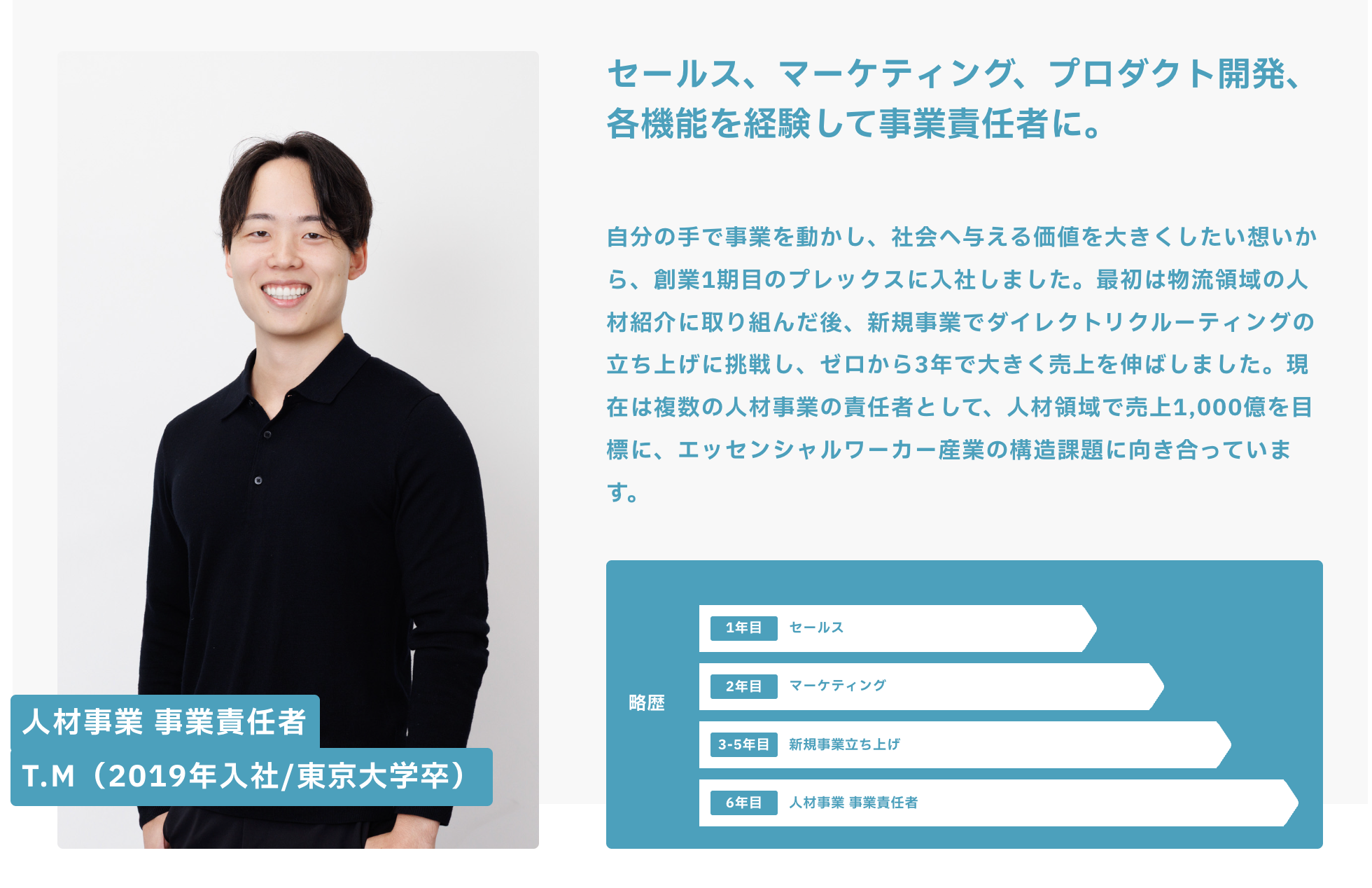 プレックスでは入社直後から事業を動かす役割を担うメンバーが生まれています。