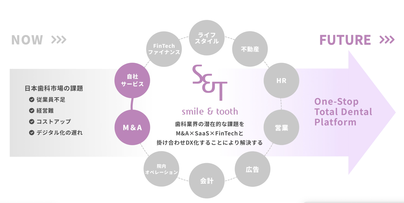 マウスピース矯正を起点とした事業展開・M&Aを通じた事業承継、そして将来的にはSaaSやFintechの展開を通じて、歯科業界の未来に必要なプラットフォームを創り出していきます。私たちが最も大切にしているのは、「現場で信頼される存在」であること。