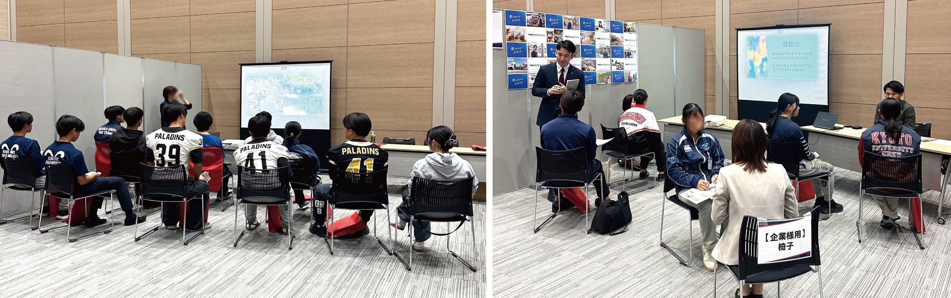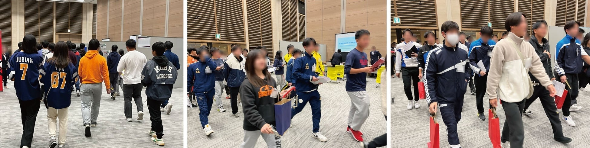 絶対着座ルールや、企業ブースでの25分間の説明が終わるごとに退場する都度退場ルール、ユニフォーム着用を推奨するなど、一般的な合同企業説明会とはひと味違う部活のみかたの「業界研究会」を、ぜひご取材ください。