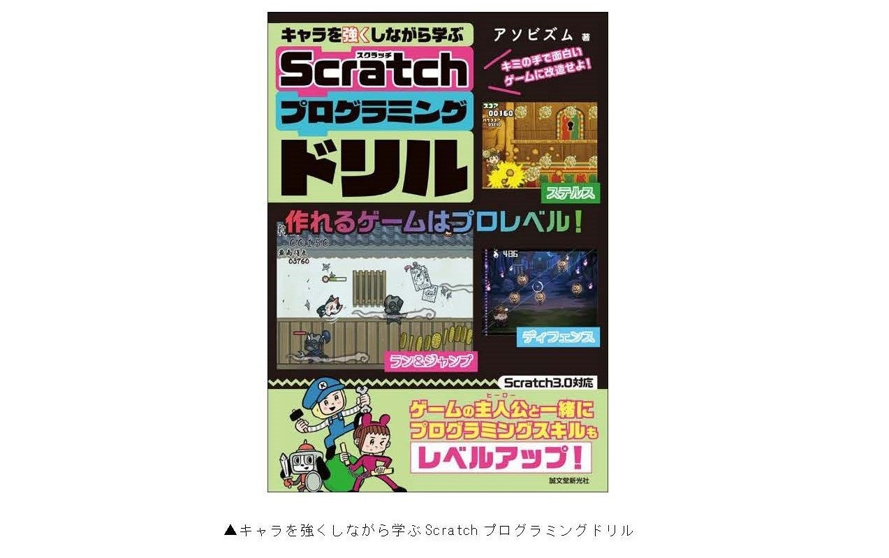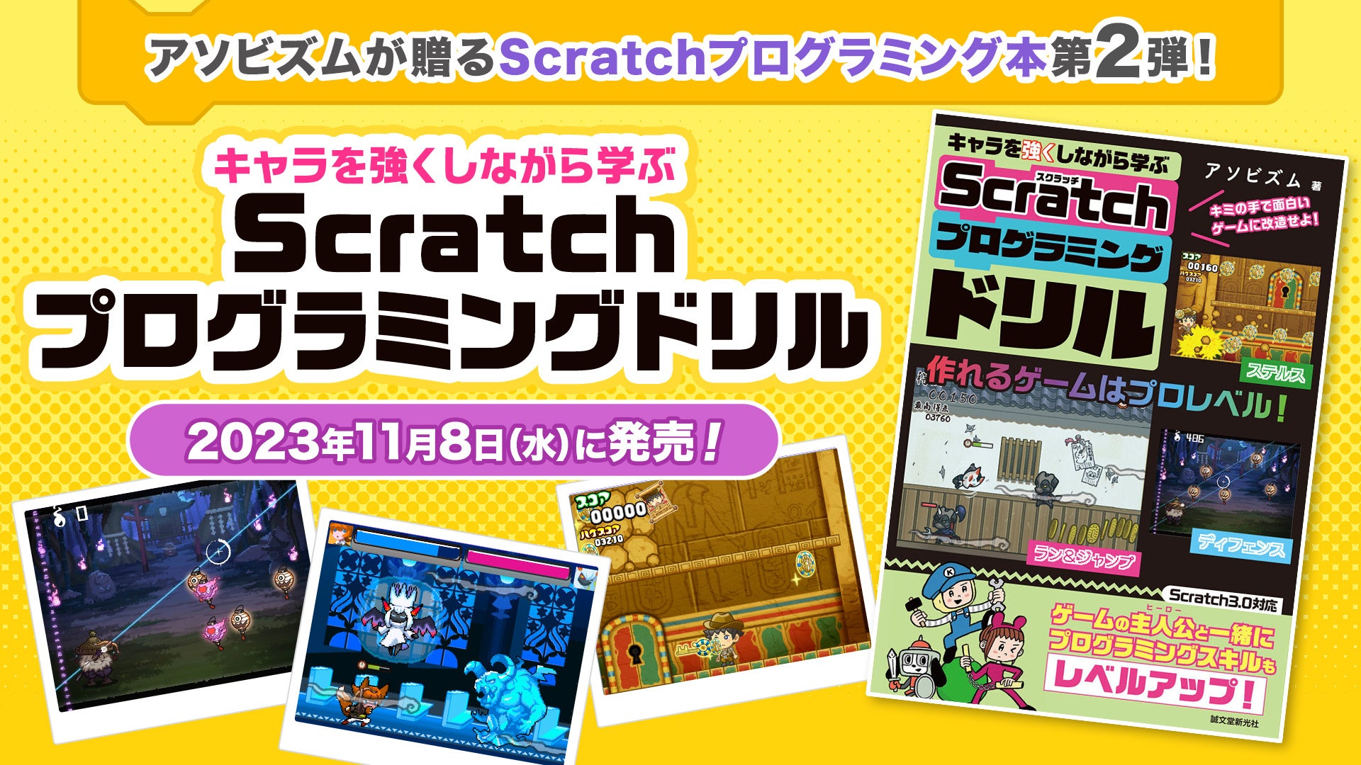 アソビズムが贈るScratchプログラミング本第2弾!「キャラを強くしながら学ぶScratchプログラミングドリル」2023年11月8日(水)に発売!