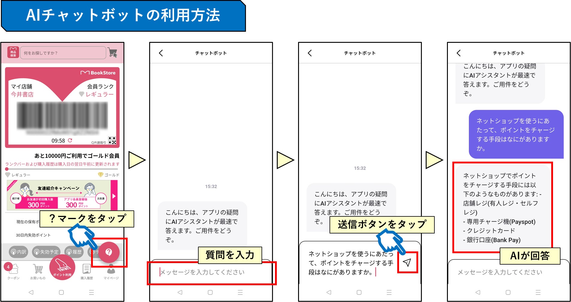 こうした状況の中、以前よりBookStoreアプリの開発に携わっていただいている株式会社コアモバイル(本社:東京都台東区雷門)より、同社が開発した独自システムの中のサービスとして組み込み可能なAIチャットボット「サポリィ(Sappoly)」の提案を受けました。社内で検討した結果、「お客様の利便性向上と店舗スタッフの業務負担軽減を同時に実現できる」と判断し、「サポリィ(Sappoly)」の導入を決定いたしました。