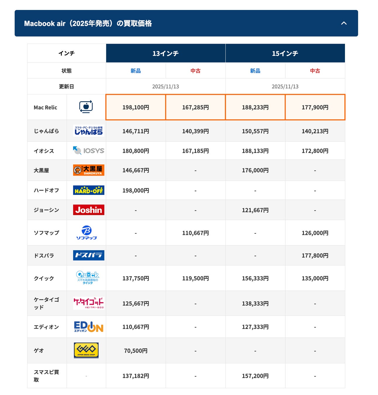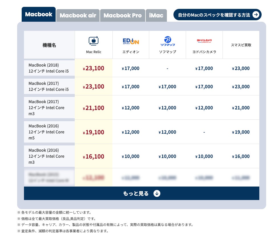 Mac Relic(マックレリック)では、シリーズ別・モデル別買取価格表を掲載しています。