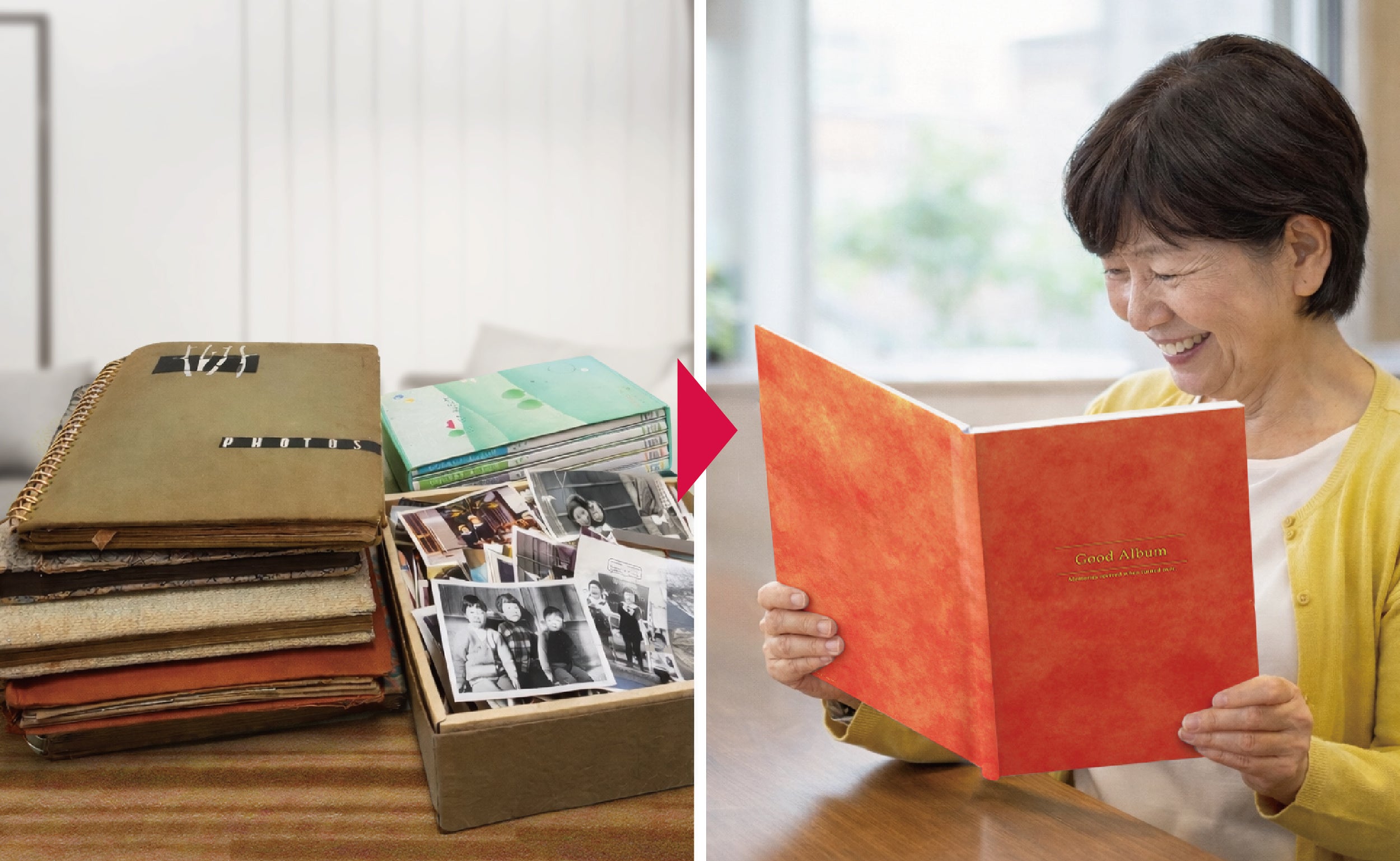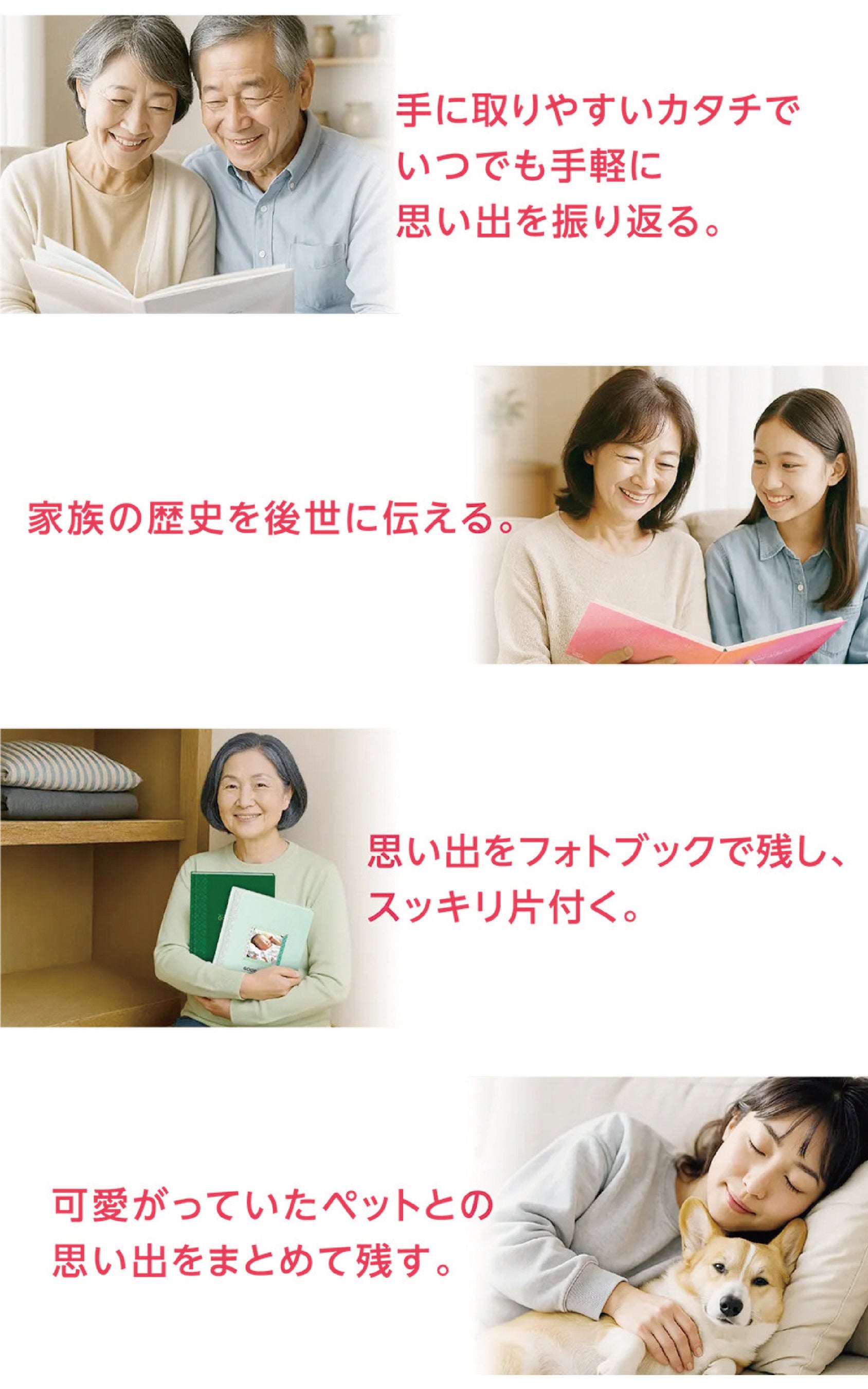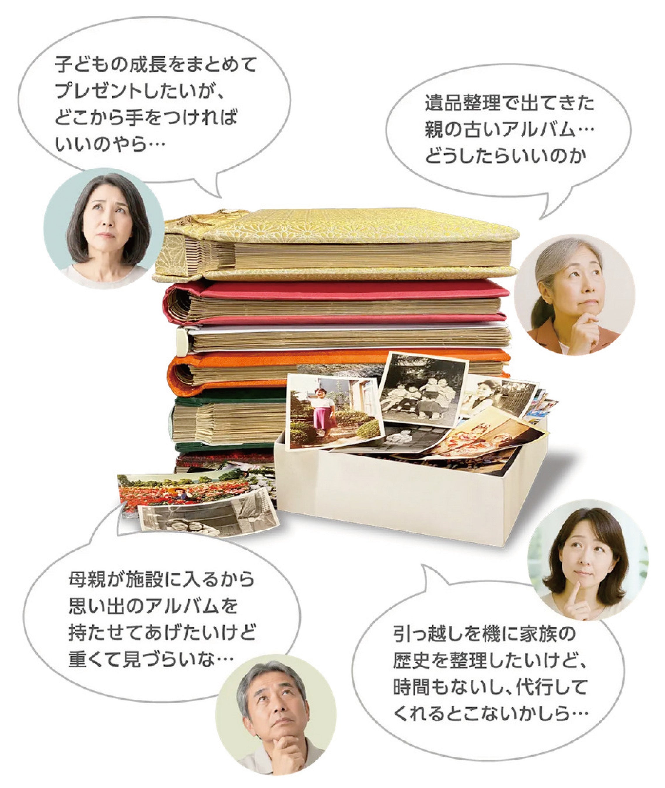 写真整理を「自分のため」だけでなく、「ありがとう」「想いを伝える」ギフトとして活用できる選択肢を新たに提案します。
