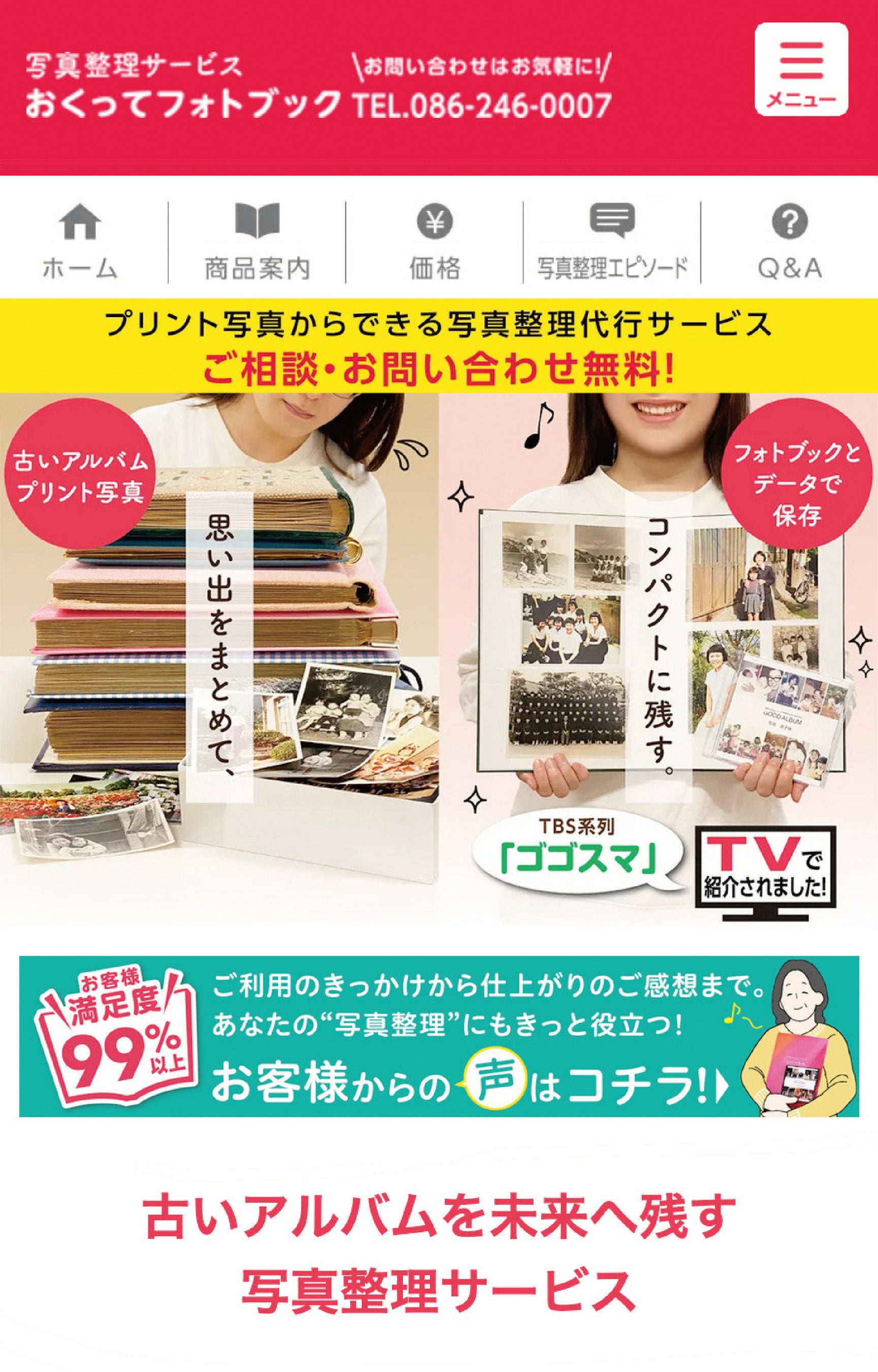 こうした背景を受け、アナログ写真整理サービス『おくってフォトブック』(運営:有限会社バサラ/岡山県)は、「いつでも手にとって振り返れるカタチで思い出を未来へ残す」という価値を、より分かりやすく伝えるため、公式ホームページのトップページを全面的にリニューアルいたしました。