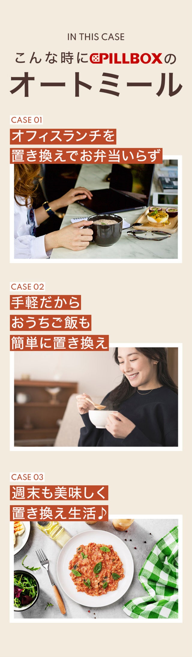 - Point①:いま大注目の健康食”オートミール”を、美味しく手軽に!