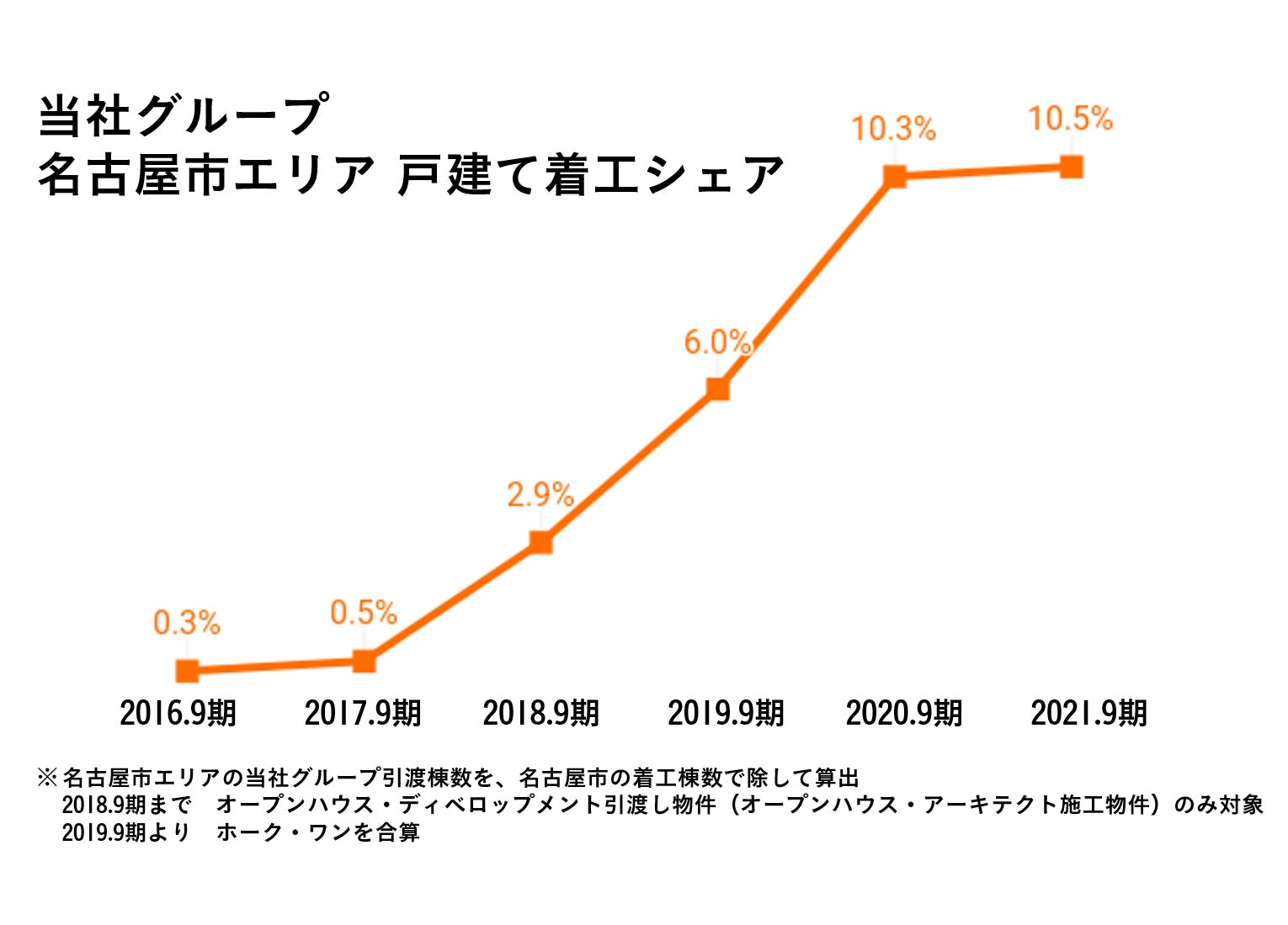 名古屋市内においては、オープンハウス・アーキテクト単体での施⼯棟数は毎年約 10 %増です。また、名古屋市エリアにおける当社グループでの引渡棟数は⼾建て住宅着⼯数シェアの約 10 %を占めています。今後のさらなる成長を見込み、木造施工パートナーの募集を強化しております。