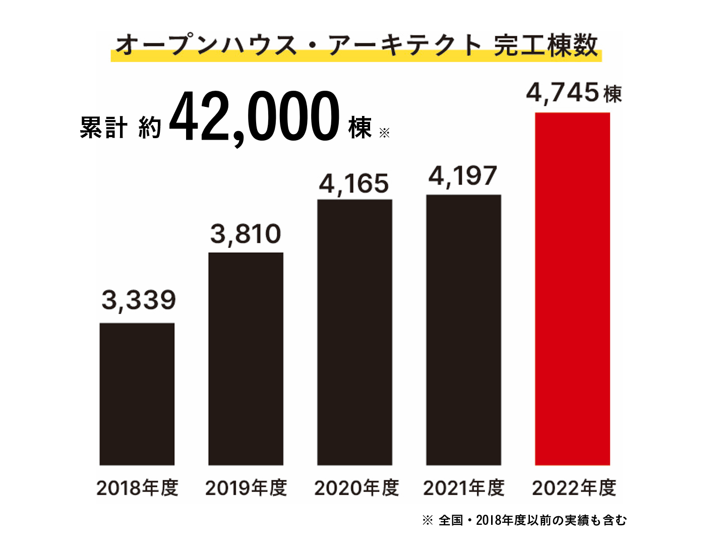 オープンハウス・アーキテクトは、毎年建築棟数を伸長しております。今後さらなる棟数拡大を計画しており、安定・継続した収入をご期待いただけます。