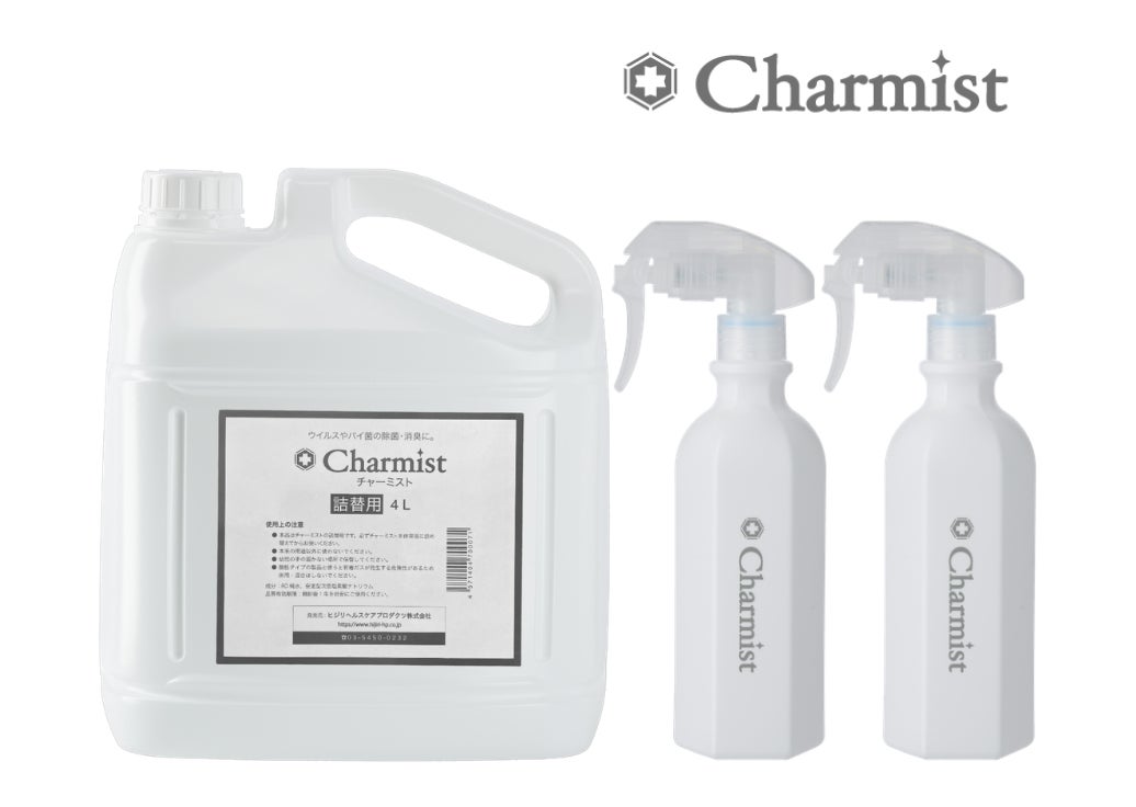 チャーミストは、安定型次亜塩素酸ナトリウムを主成分とした、高い除菌力と安全性を兼ね備えた除菌消臭剤で、2015年以降ホテル業界での導入が進み、採用事例を重ねてきました。