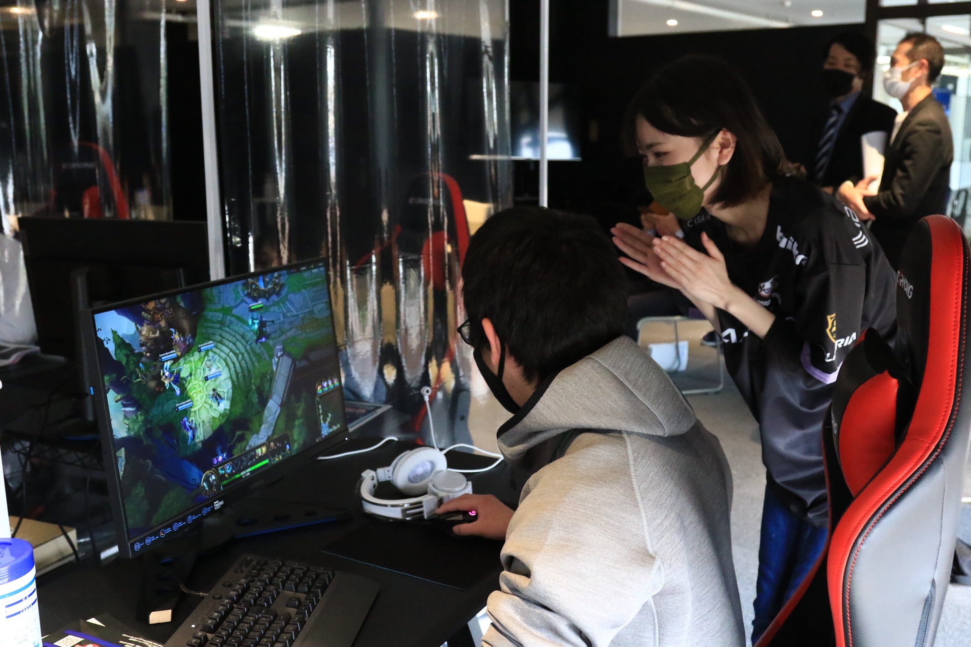LoLを筆頭としたタイトルで活動する、プロゲーミングチーム「Rascal Jester」に所属するShakespeare選手、Sirotama選手の2名から、キャラクターの操作方法やゲームの進め方、勝利を勝ち取る連携方法など、直接指導を受けながらプレイを進めました。