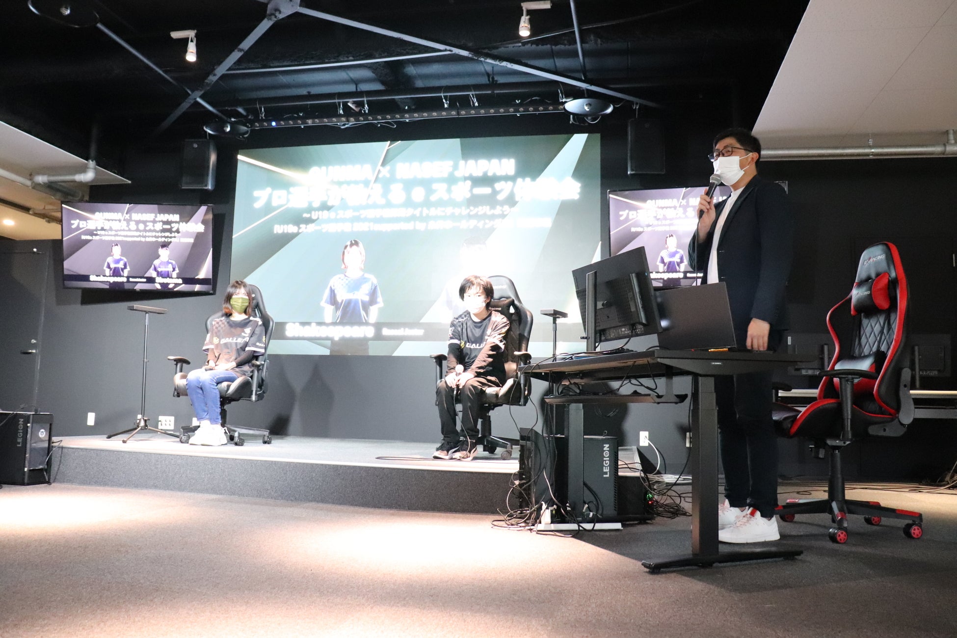 当日は一般募集で集まった中高生15名と保護者も参加し、League of Legendsの基礎知識を学ぶ「講座」や、「Rascal Jester」所属のShakespeare選手とSirotama選手から直接学べる「eスポーツ体験」、 全日本eスポーツ実況王決定戦優勝者のsyouryuさんをMCに、プロ選手2名とNASEF JAPANの統括ディレクターを務める内藤裕志が「クロストーク」を行いました。