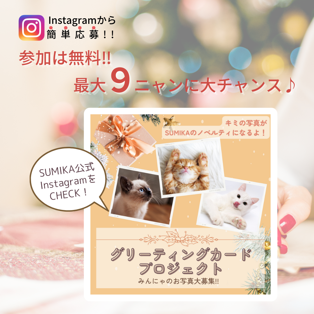 株式会社TIRAMISU(本社:東京都世田谷区 代表取締役:高澤 匡 以下「当社」)が運営する 猫ぐらしブランド「キミとワタシのSUMIKA」は、オリジナルグリーティングカードのモデルとなってくださる猫ちゃんの募集を2022年10月21日より公式Instagramにて開始いたしました。