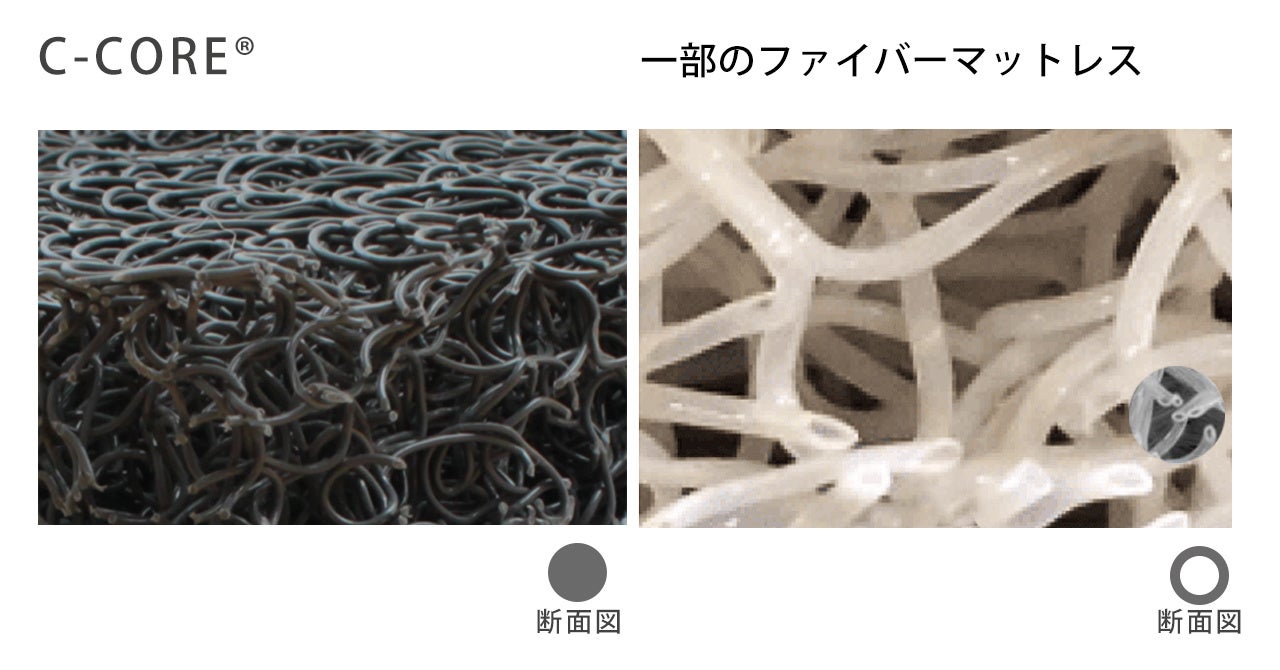 さらにファイバー内部は空洞ではなく密度を調整することで、ウレタンマットレスと同等のかたさを実現し、身体をしっかり支えます。