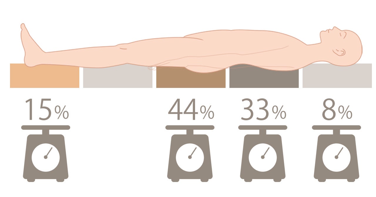 オーダーメイドの「じぶんまくら・じぶん敷ふとん」をお作りする際、全身を測定してお客様にぴったり合う敷布団の部分ごとのかたさを導きだします。