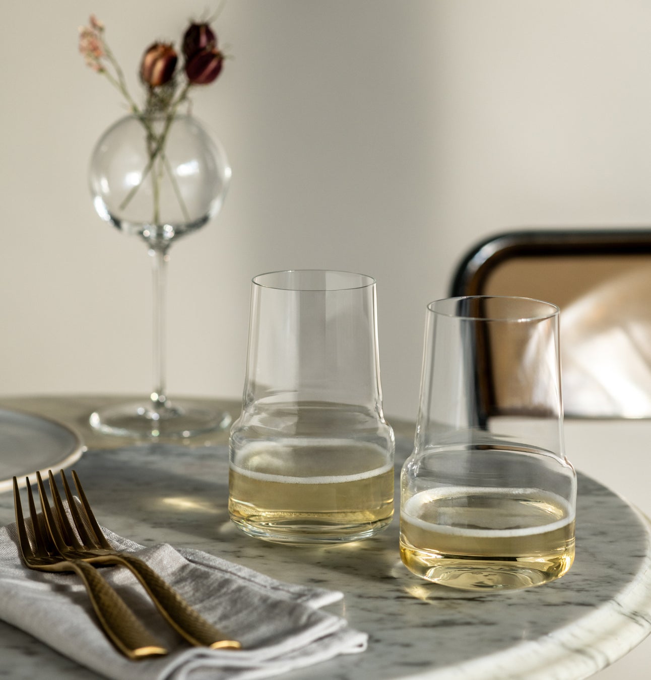 また、グラス内部の底に刻印されたツヴィーゼルグラスのロゴは、シャンパン、スパークリングワインのほかビールや炭酸飲料などの泡の立ち上がりを美しく見せる発泡ポイントとしても機能します。