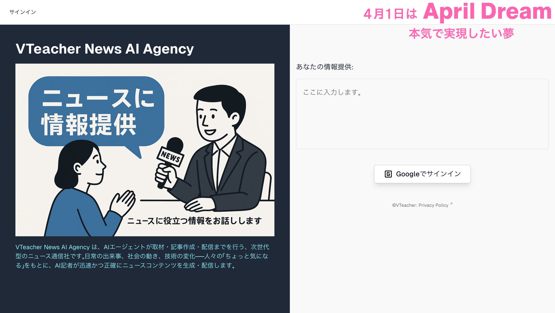 VTeacher News AI Agency = 情報を配信するだけでなく、“気づき”や“学び”を届ける通信サービス