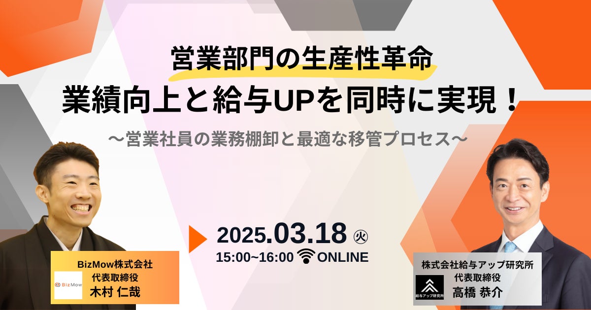 数々の企業の成長を支援してきた、BizMow株式会社と給与アップ研究所の代表が、成功事例を交えながら、具体的な戦略をご紹介します。
