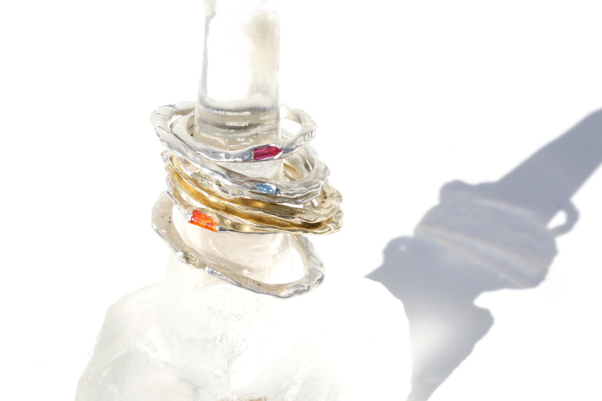 直営店、POP UP STORE、公式オンラインストアにてご希望のGEM(石)や素材、サイズをお選びいただきます。カジュアルな普段使いにも、特別なシーンにも合わせられるようお好みのリングをオーダーいただけます。