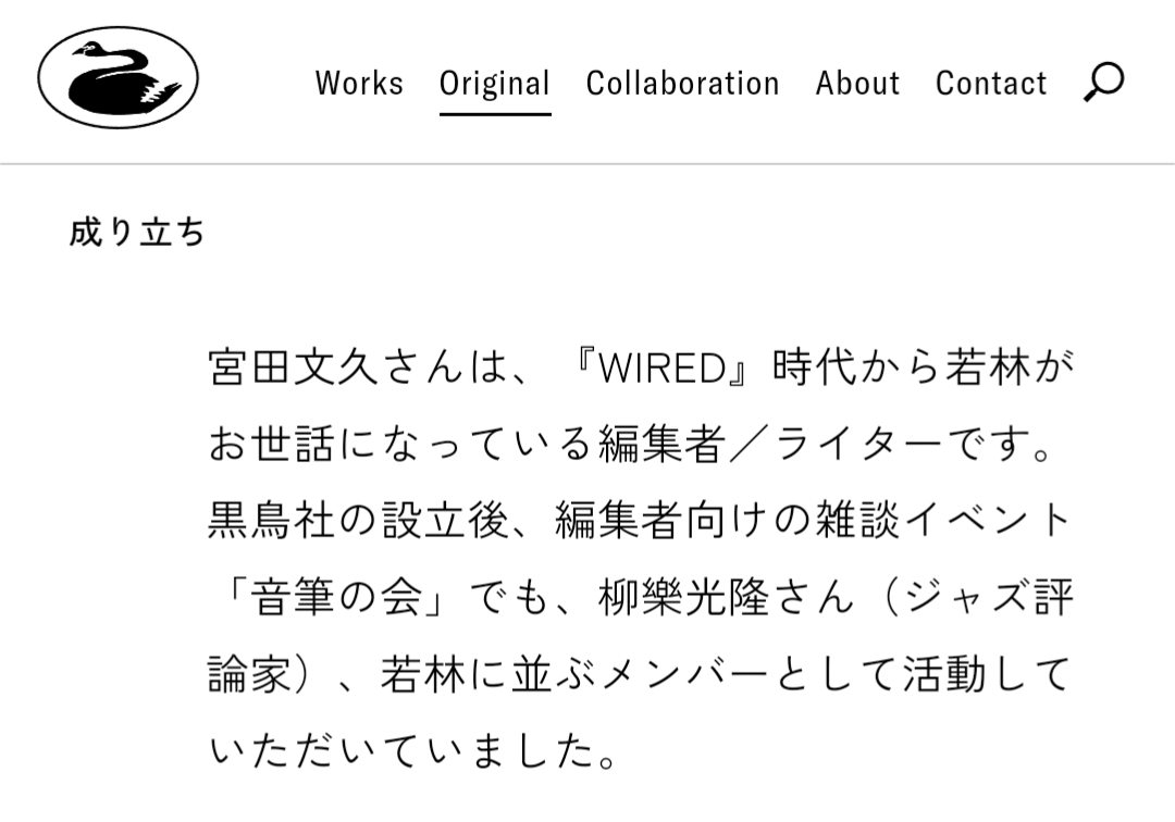 黒鳥社は大好きな会社なのですが、特異性が高すぎて何にも例えることが難しい、一言で言えば分かりづらい組織です。私はそれがとても素敵だと思います。このウェブサイトで目指したところは、その分かりづらさを分かりやすく表現するということです。このウェブサイトが黒鳥社を読み解く一助となり、何かに繋がることを願っています。