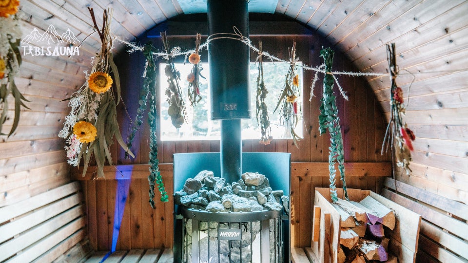 色々な国に旅をしているチームだからこそできたもの。ドライフラワーをサウナ室に飾り、