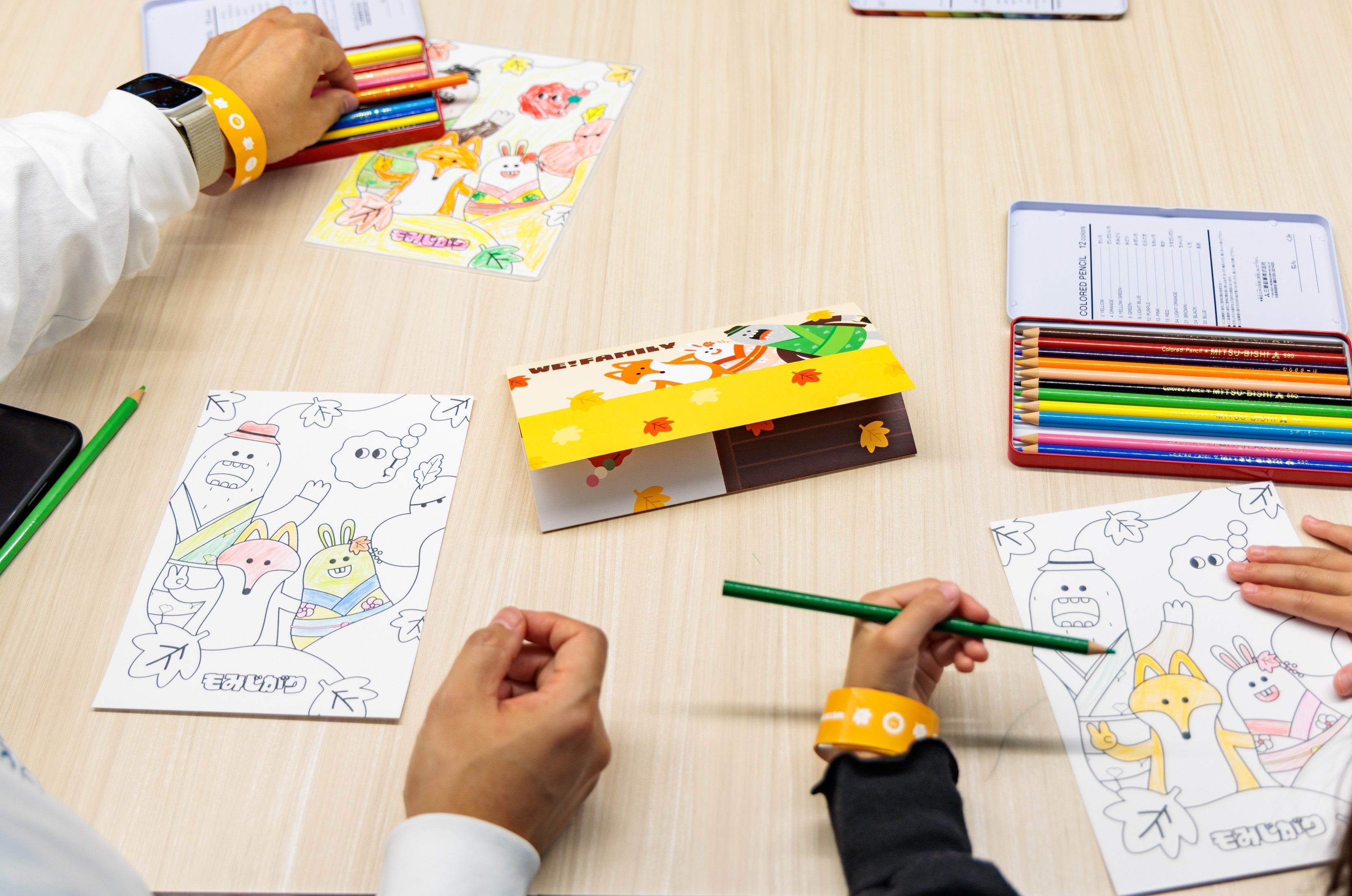 ・「塗り絵」:WE! FAMILYキャラクターに自由に色を塗って仕上げ