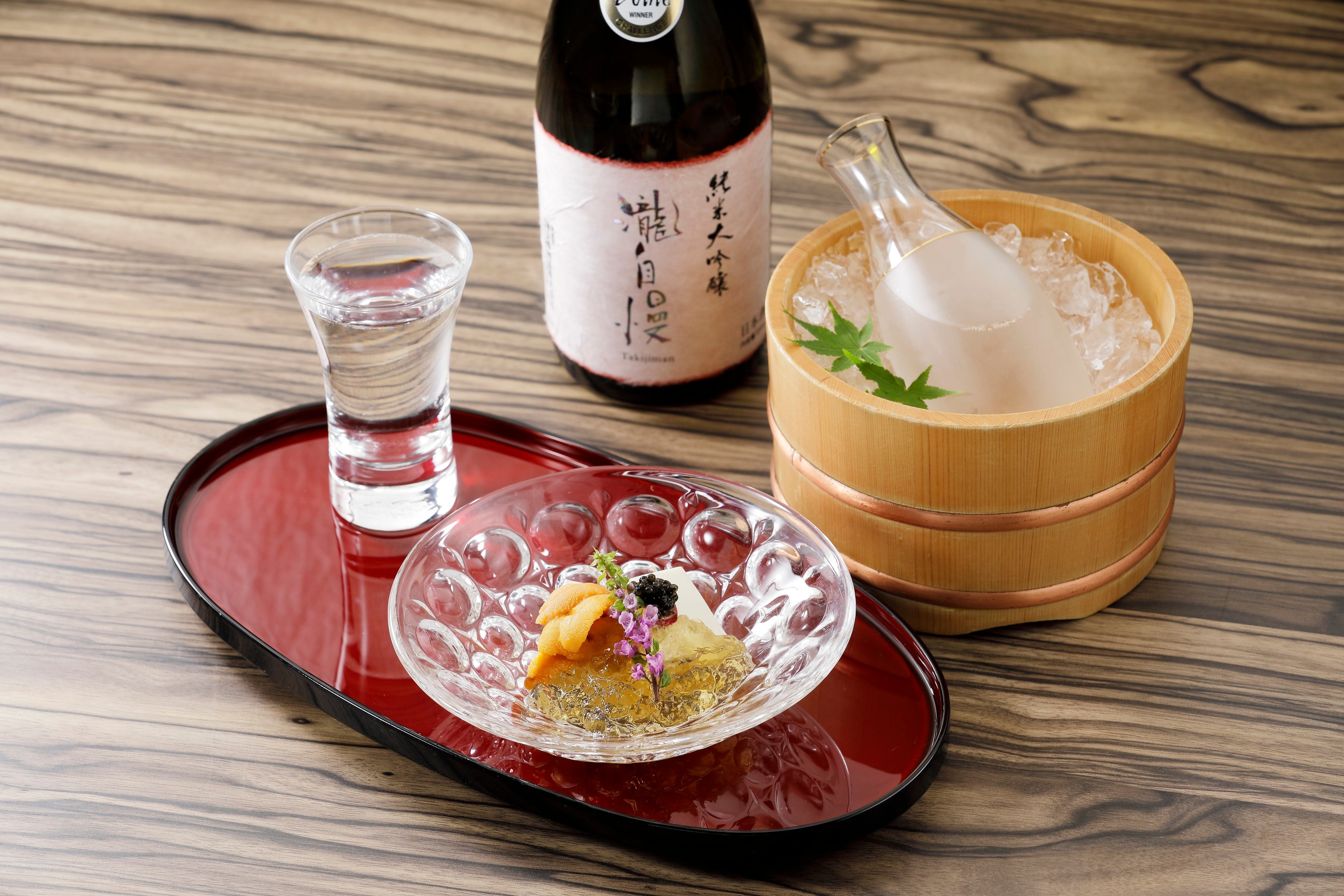 雲丹の香り豊かな冷菜と、冷酒のマリアージュ。