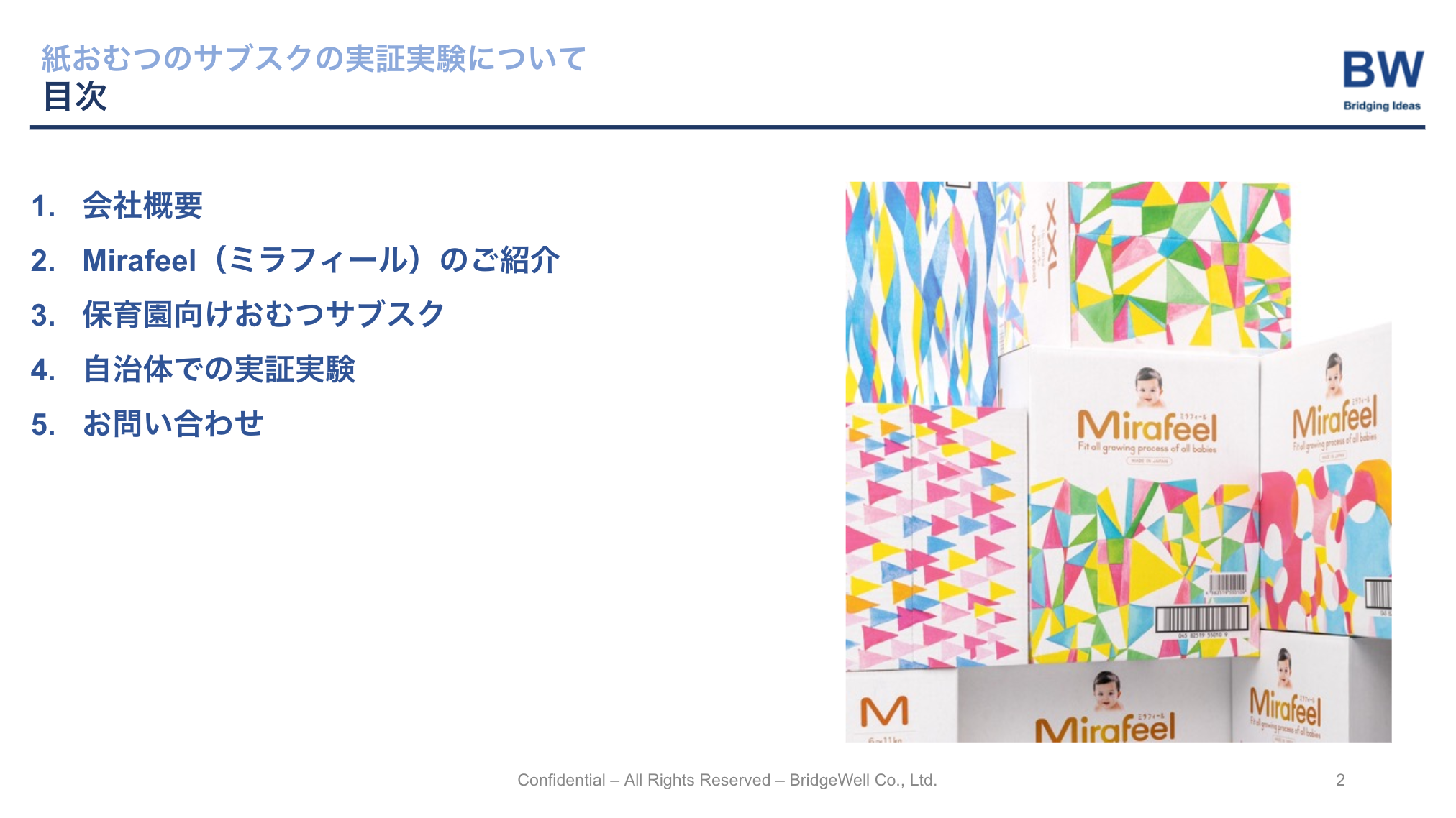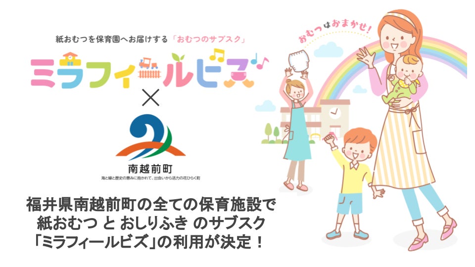 株式会社ブリッジウェル(本社:東京都江東区)は、2022年11月より福井県南越前町の町内全ての保育施設において、保育施設向け紙おむつのサブスク「ミラフィールビズ」が採用されることをお知らせします。自治体では初めての導入となります。