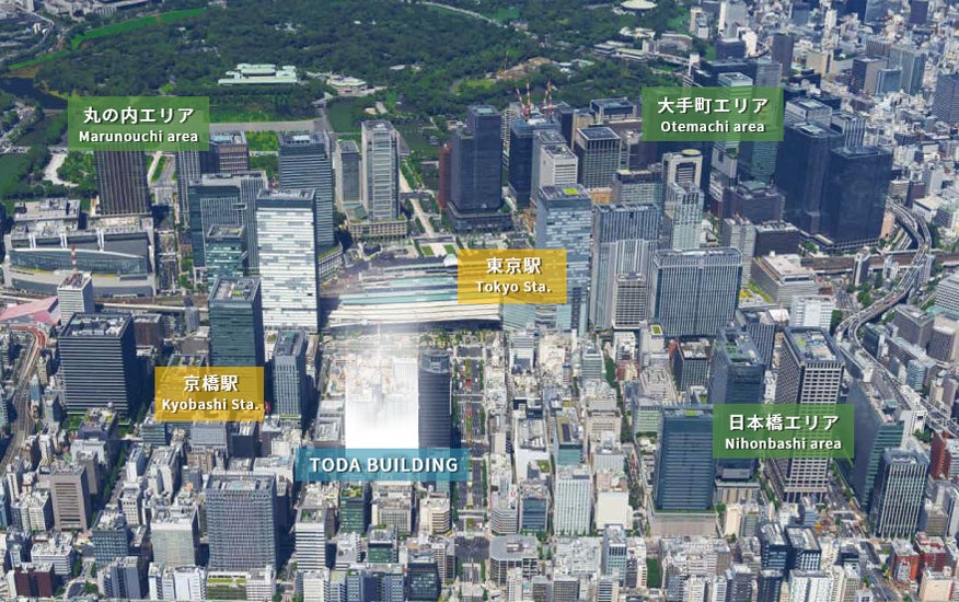 本プロジェクトは、京橋の地で120年以上社業を営む当社が、本社建替えを機に、隣接街区(事業者:株式会社永坂産業、公益財団法人石橋財団)と共同して都市再生特別地区制度(特区)を活用し、特区テーマを「まちに開かれた、芸術・文化拠点の形成」として、それぞれが超高層複合用途ビルを建設する大規模開発です。当社街区では、2021年8月にTODA BUILDING新築工事着工、現在2024年9月の竣工に向けて工事が進んでいます。
