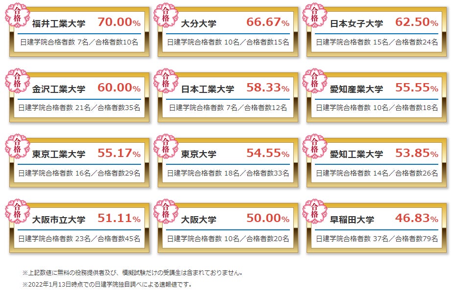 - 大学生の1級建築士合格者の多くが日建学院生です!