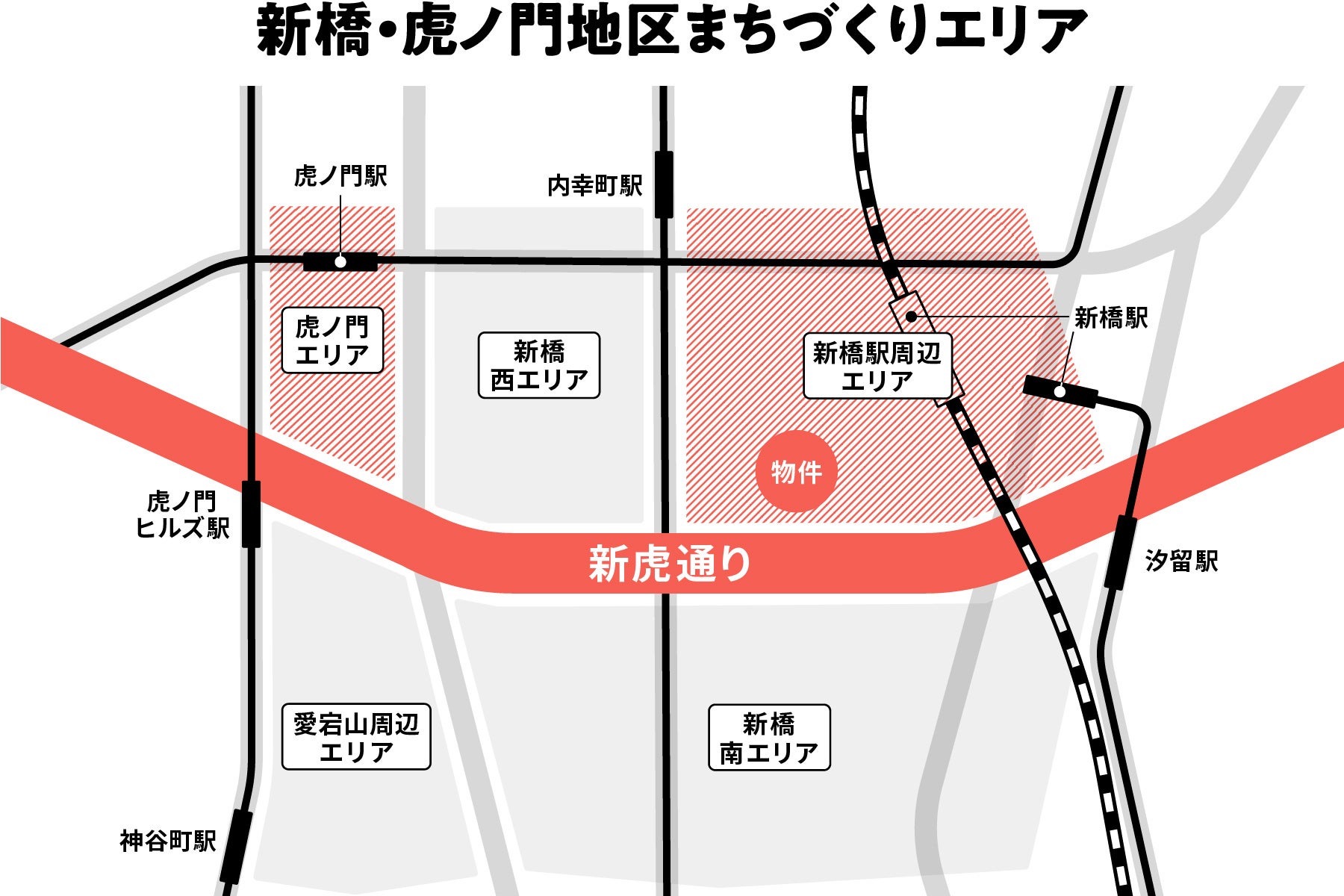 「新橋 事業用地Ⅰ」の⼟地・建物に関しましては、現況5階建てですが、再建築する場合には10階建てまでの建築が可能となる想定であり、将来的に建替えができれば開発素地としての価値が高い物件です。「新橋 事業用地Ⅱ」の土地に関しましては、開発の進む新虎通りに面しており、現況は駐車場(更地)として使用しているため、開発への着手がしやすい状況です。