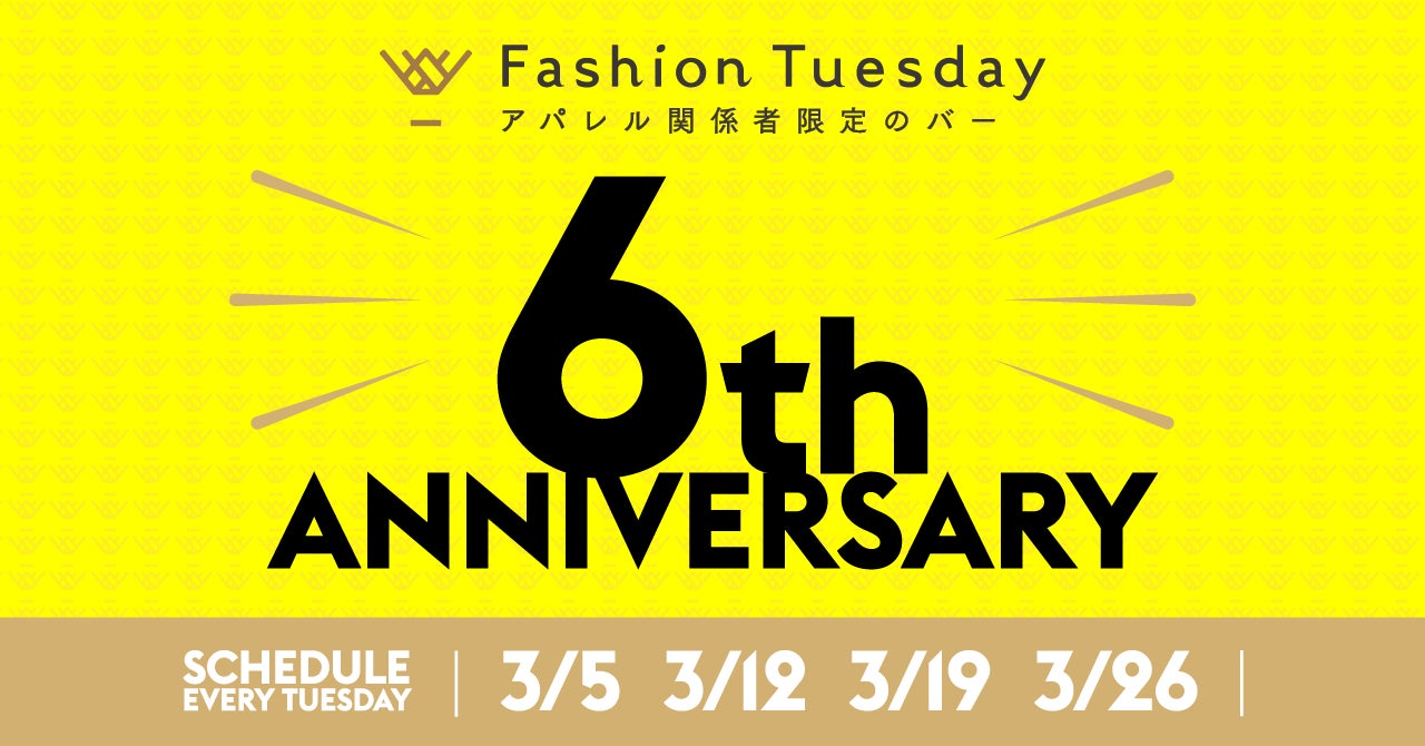 2024 年 3 月 5 日(火)、12 日(火)、19 日(火)、26 日(火)の 4 週にわたり、Fashion Tuesday 6th Anniversary Party を開催させていただきます。