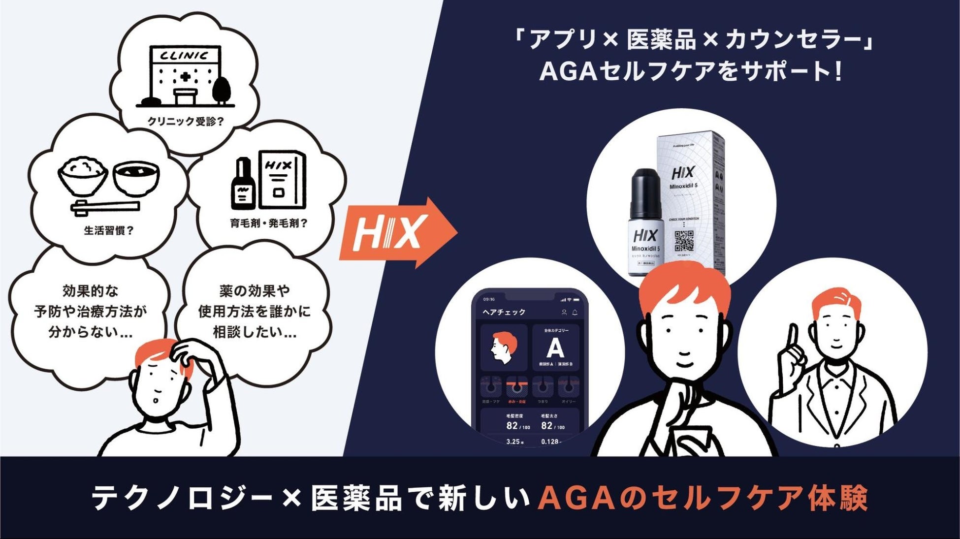 そして、これを実現するための第一歩として、当社では多くの男性が悩みを抱えているAGA領域に対して「HIX」というサービスを展開しています。