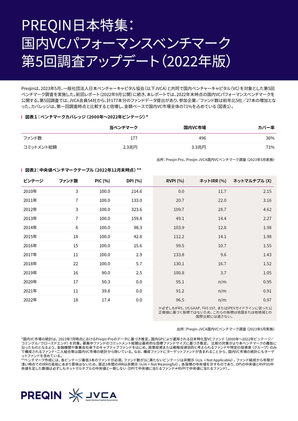 JVCAとプレキンは、2019年から、日本に特化したベンチャーキャピタル(以下国内VC)ファンドのパフォーマンスベンチマークを策定することで国内VCの透明性の向上に共同で取り組んでまいりました。