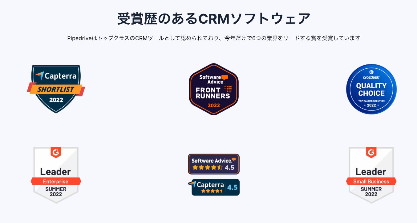 またPipedriveはグローバルにおいても数々の賞を受賞しています。