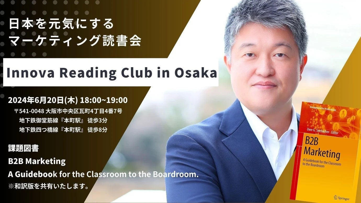 コンテンツマーケティング支援サービスを提供する株式会社イノーバ(本社:東京都新宿区、代表取締役社長CEO:宗像淳、以下イノーバ)は、BtoB企業のマーケティング実践者向けに、日本を元気にするマーケティング読書会「Innova Reading Club in Osaka」を、2024年6月20日(木)に大阪市内にて開催します。