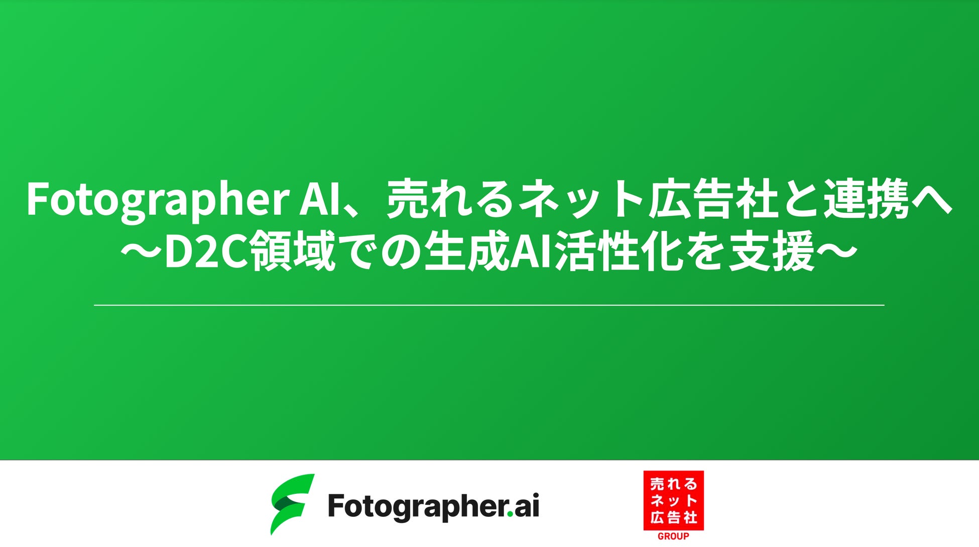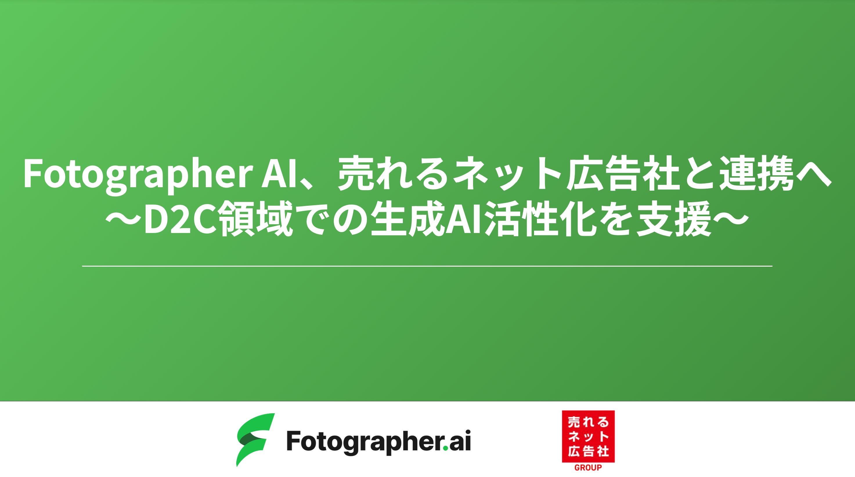 【Fotographer AI】売れるネット広告社と連携し、D2C(ネット通販)領域での生成AI活性化を支援
