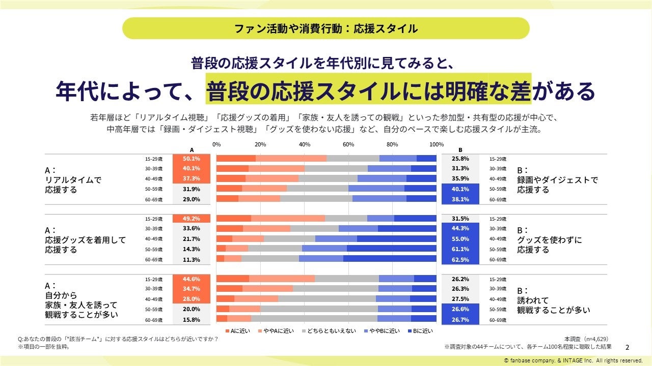 【例2】年代別分析:年代ごとの応援スタイルの違いを知って、ファンサービス・ファン施策に活かす