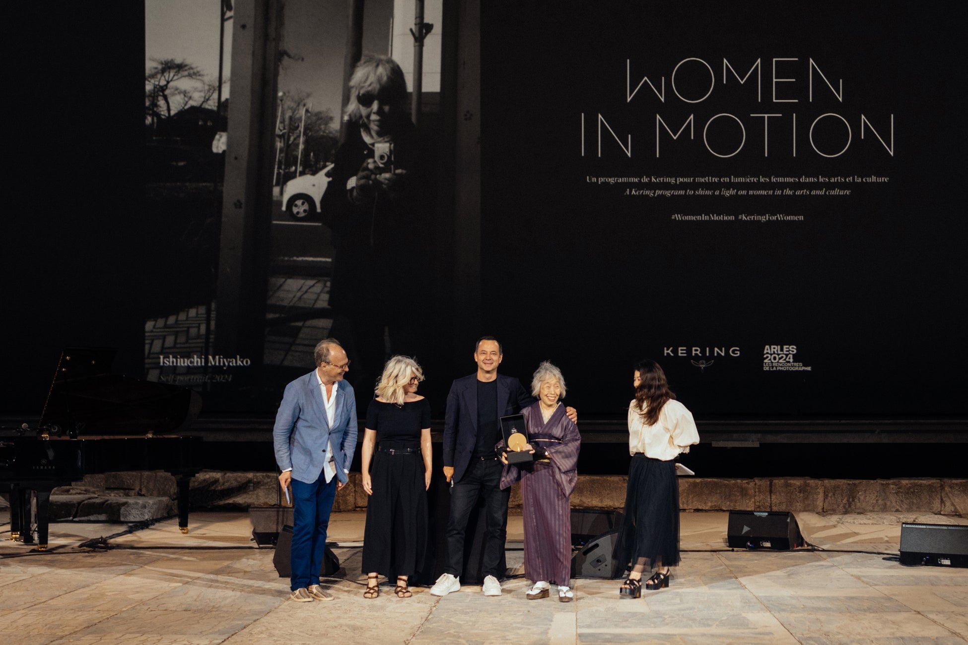 2024年7月2日火曜日の夜、フランス・アルルの古代劇場にて開催されたアルル国際写真フェスティバルの公式イベントにて、ケリングと同フェスティバルにより「ウーマン・イン・モーション」フォトグラフィー・アワードが写真家・石内都に授与されました。授賞式で彼女は自身の作品を紹介しながら、これまでの歩みと、写真と社会における女性の貢献についての考えを観客に語りました。石内都の作品は、アルル国際写真フェスティバル期間中、フランスで初の個展開催となる「Belongings」展にてアルルのサル・アンリ・コントにて披露されています。