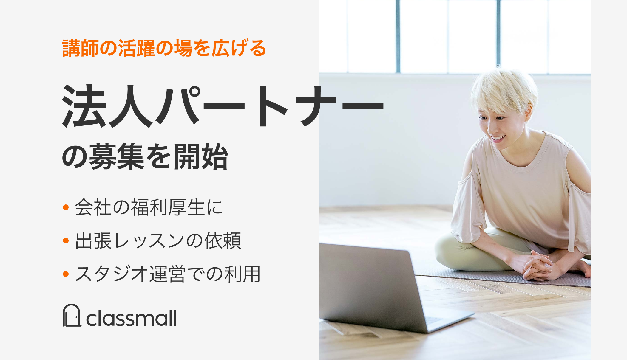 今回、より講師の活躍の場を広げ、classmallの新しい使い方を提案するため、会社の福利厚生としてのサービス利用や出張レッスンの講師のご紹介を行う、法人パートナーの募集を開始しました。